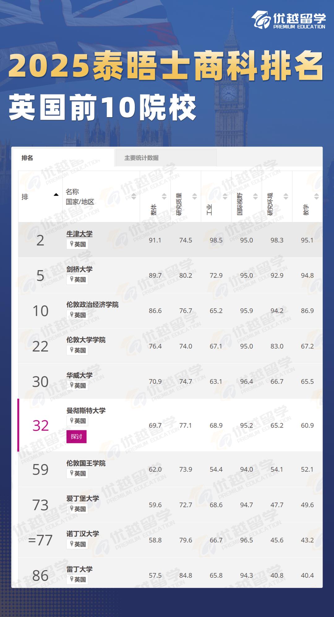 以上是【【英國碩士】泰晤士THE商科排名發布!這才是英國商科最強的大學】相關的全部內容,查看更多【英國碩士商科】相關資訊可前往【優越留學】首頁!詳細申請規劃及方案定制請預約優越留學顧問為你一對一解答!