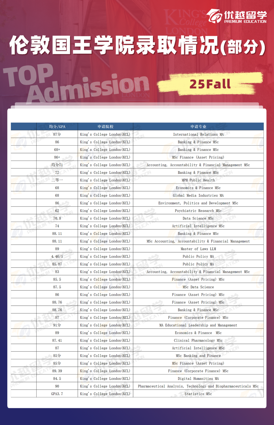 KCL 的 offer 接受率相當(dāng)可觀。許多學(xué)生一旦成功申請(qǐng)到該校,便會(huì)將其確定為最終就讀院校,不再繼續(xù)申請(qǐng)其他學(xué)校。對(duì)于雙非及雙非一本的學(xué)生而言,KCL 往往是他們的理想之選。