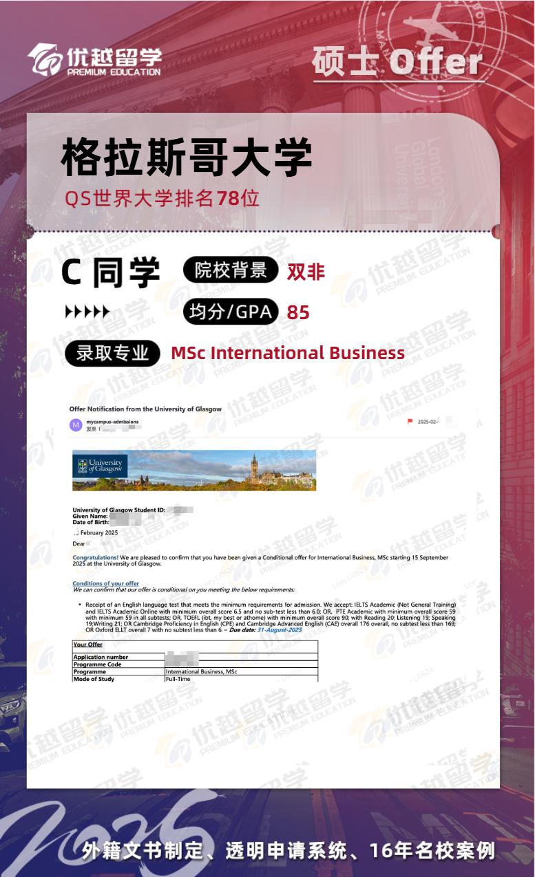 商學(xué)院史詩(shī)級(jí)放寬:取消對(duì)雙非院校的限制,均分直降 5 - 10 分!985/211 學(xué)生均分 75 +、雙非 80 + 即可沖擊商科專業(yè)。優(yōu)越留學(xué)的文書團(tuán)隊(duì)可以根據(jù)格拉斯哥大學(xué)商學(xué)院的新政策,突出學(xué)生的專業(yè)能力和潛力,讓雙非學(xué)生在申請(qǐng)中更具競(jìng)爭(zhēng)力。