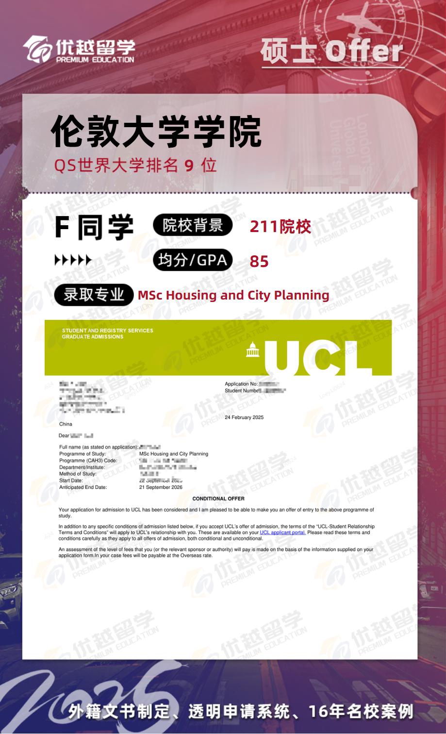 首先是剔除了高風(fēng)險項目:放棄純設(shè)計類(如港中文MSc in Urban Design),其次鎖定政策導(dǎo)向項目:主申UCL Housing and City Planning、曼大Global Urban Development,在梯度設(shè)置上,將格拉斯哥City Planning設(shè)為保底(近三年中國學(xué)生錄取率穩(wěn)定在65%)