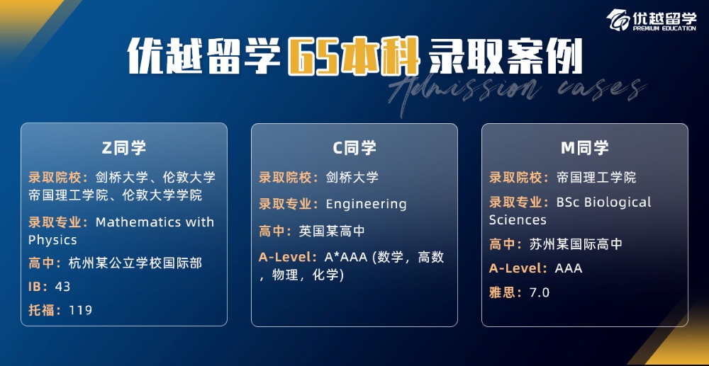 優越留學在上海、北京、南京、廣州均培養了一批經驗豐富的留學顧問,擅長學生定制化升學方案,根據不同年齡段的學生提供學生升學指導規劃,多年來幫助眾多學生錄取牛劍G5等名校。