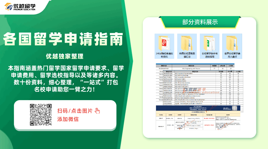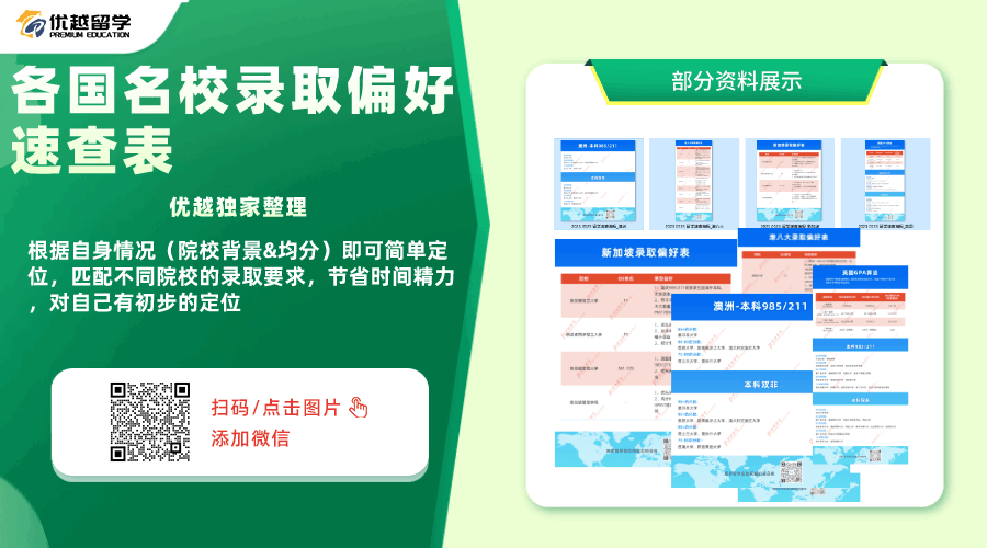 以上是【本期留學(xué)資料大放送】相關(guān)的全部內(nèi)容,查看更多出國留學(xué)相關(guān)資訊可前往【優(yōu)越留學(xué)】首頁!詳細(xì)申請(qǐng)規(guī)劃及方案定制請(qǐng)點(diǎn)擊頁面【【在線咨詢】】預(yù)約優(yōu)越留學(xué)顧問為你一對(duì)一解答!