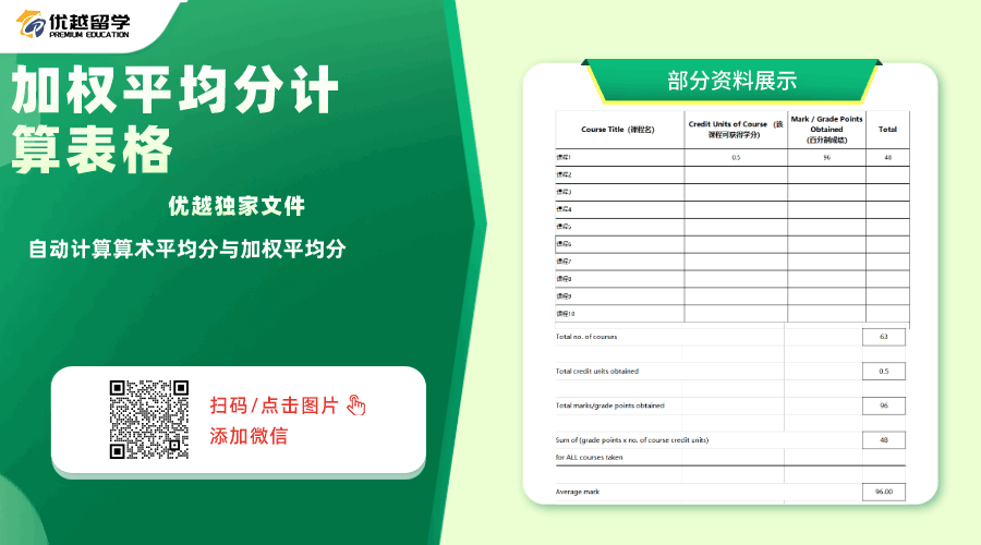 留學(xué)資料【10】:加權(quán)平均分計(jì)算表格