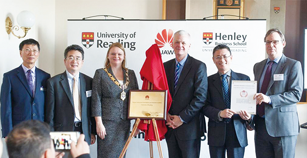 當天的信息網絡技術學院合作發布會由雷丁大學副校長Sir David Bell、亨利商學院院長Professor John Board、華為副總裁英國企業事業部部長趙勁松主持,雷丁市市長薩拉•哈克(Sarah Hacker)、中國駐英國大使館公使銜參贊蔣蘇南以及來自當地政府、雷丁大學、亨利商學院的相關人士等出席。