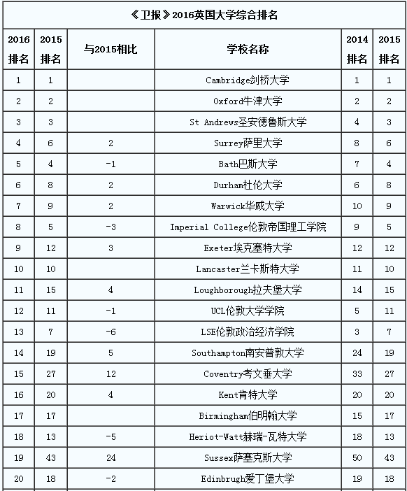 首先是The Times and Sunday Times League Table 2016