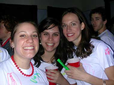 說(shuō)到兄弟會(huì)派對(duì),你應(yīng)該知道組成Frat Party的要素是:大房子、吵鬧的人群、瘋狂的音樂(lè)以及取之不盡的啤酒。兄弟會(huì)派對(duì)的中流砥柱不用說(shuō)當(dāng)然是keg— 容量為15加侖啤酒的鐵桶。只要你跟兄弟們混熟了,那么就開(kāi)始準(zhǔn)備飲酒游戲吧。因?yàn)檫@樣的派對(duì)上音樂(lè)都十分的吵,各位兄弟的行為可能會(huì)很出格,那些比較害羞和膽小的人可能不太適合這類派對(duì)。因?yàn)橥ǔS泻芏嗳藚⒓?,而且是各色各樣,魚(yú)龍混雜,所以這樣的派對(duì)是絕佳的機(jī)會(huì),跟不同背景的同學(xué)在輕松愉快的氣氛下盡情享受周末。