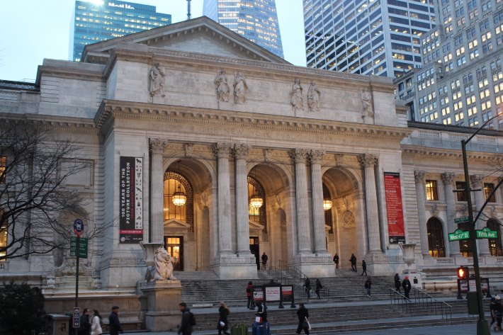 紐約公共圖書(shū)館(New York Public Library)是美國(guó)較大的公共圖書(shū)館。1895年由阿斯特圖書(shū)館、倫諾克斯圖書(shū)館和蒂爾登信托公司合并而成。該館經(jīng)費(fèi)主要來(lái)源于捐款。1911年竣工的宮殿式館舍建筑具有新古典主義風(fēng)格。1992年底館藏1647萬(wàn)冊(cè)(件),其中圖書(shū)410萬(wàn)冊(cè),期刊2萬(wàn)種,手稿、地圖、圖片等共有1000萬(wàn)件。