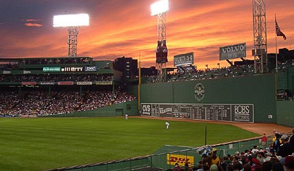 ??芬威球場(Fenway Park)是一片神圣的土地。這里的座位十分接近賽場,以至于觀眾可以聽到棒球的擊球聲在這個有102年歷史的棒球場上保持了很多傳統:記分板仍然由手工操作;排隊買芬威弗蘭克熱狗就像給洋基隊喝倒彩、用Sharpie標記右外野方向的界外標桿那樣成為了傳統的一部分。