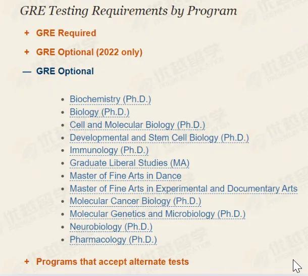 在生物工程、電氣和計算機工程、材料工程等專業上,GRE 和 GRE Sub 可選擇性提交,即有分數就可以提交,但不提交成績也不會影響錄取審核。