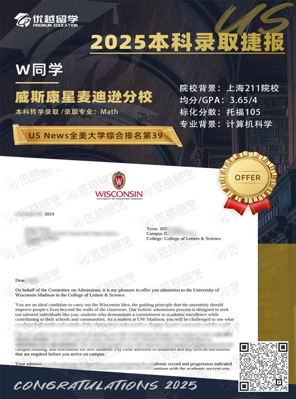 以上是【【美國本科】US·NEWS39威斯康星麥迪遜分校已發數學本科offer】相關的全部內容,查看更多【美國本科留學】相關資訊可前往【優越留學】首頁!詳細申請規劃及方案定制請預約優越留學顧問為你一對一解答!